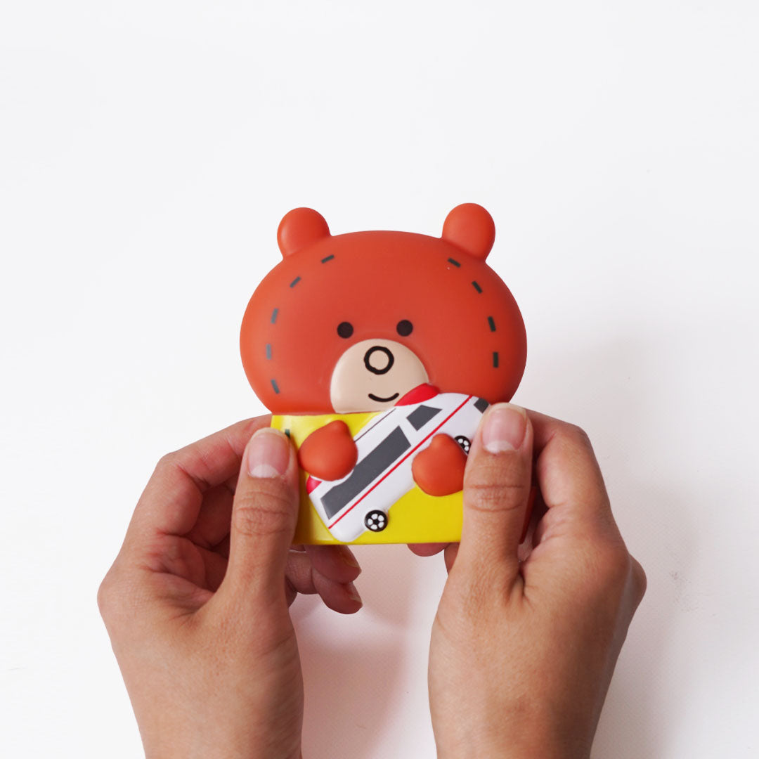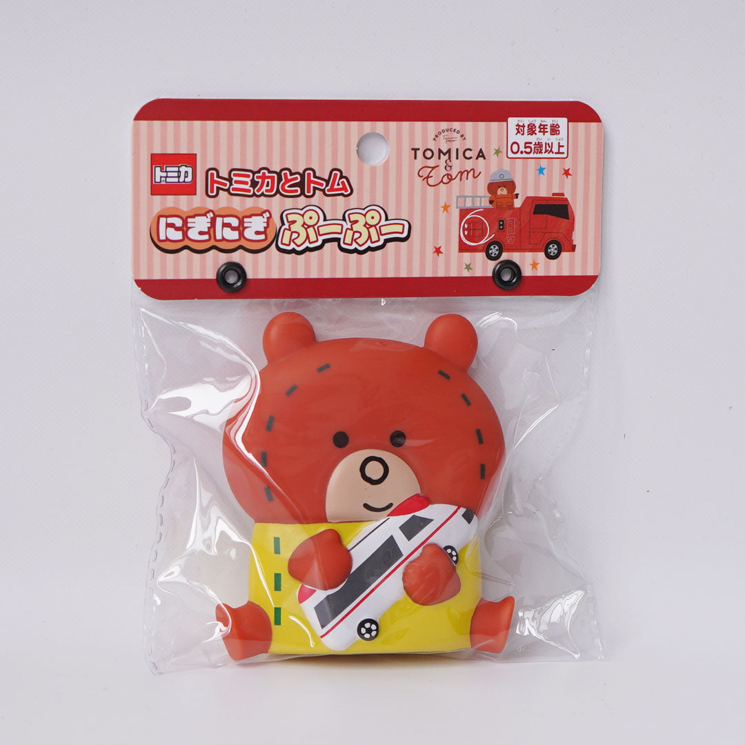 乳幼児にぴったりの音鳴り玩具です。 ぬいぐるみのトムがトミカの救急車を持った、かわいらしいデザインです。 本体には笛が入っており、握ったり押したりするとぷーぷーと楽しい音が鳴ります。 小さなお子さまでも軽い力で遊べるので、握力の発達をサポート。 柔らかい素材を使用しているため、投げても踏んでも平気です。【対象年齢】0.5歳~ 【素材】PVC